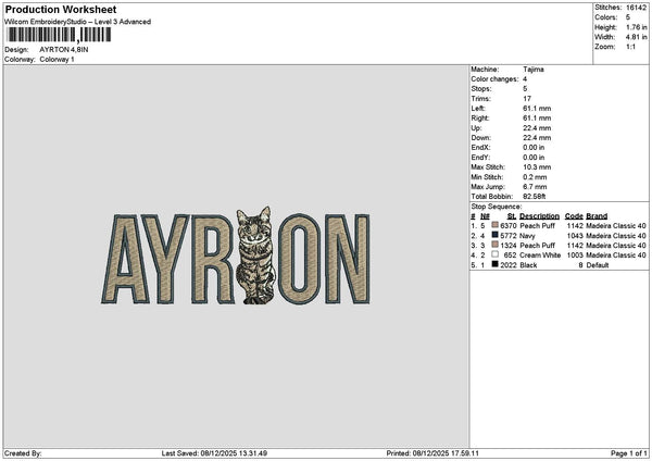 Ayrontext Embroidery File 6 sizes