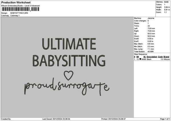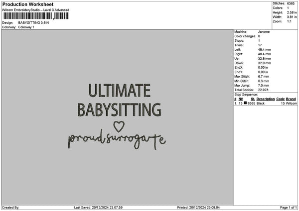 Babysittingtext Embroidery File 6 sizes