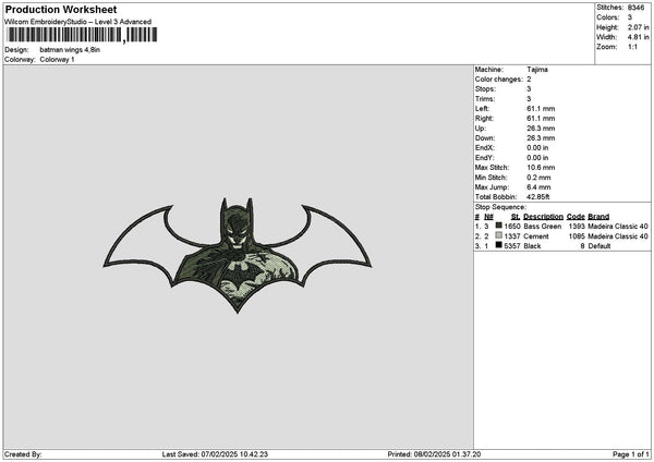 Batmanwings Embroidery File 6 sizes