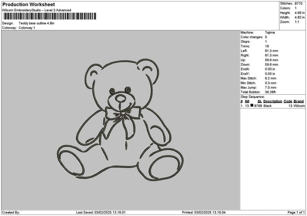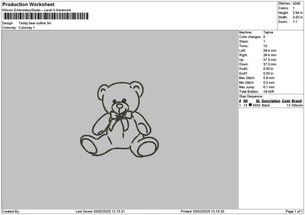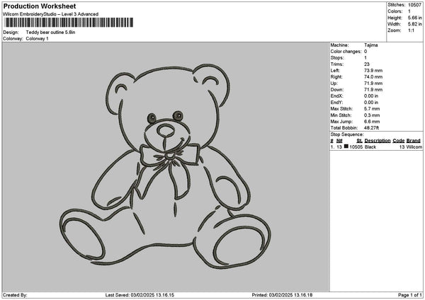 Bear Outline 0203 Embroidery File 6 sizes