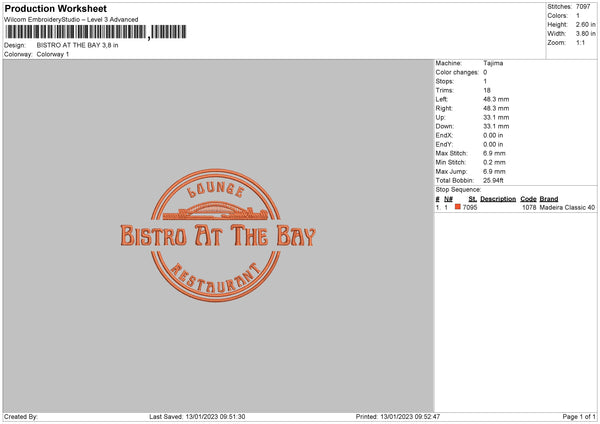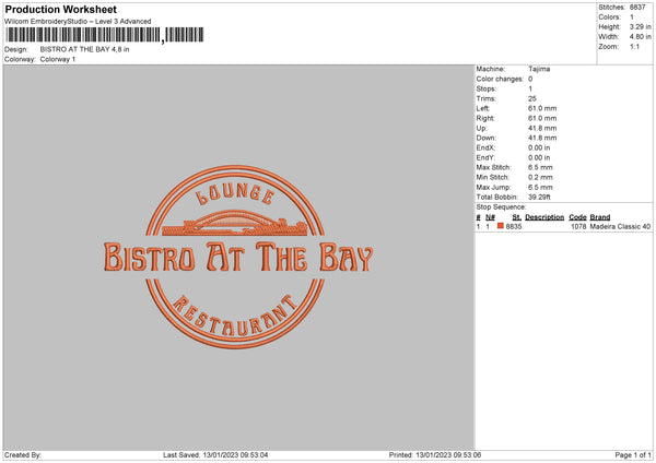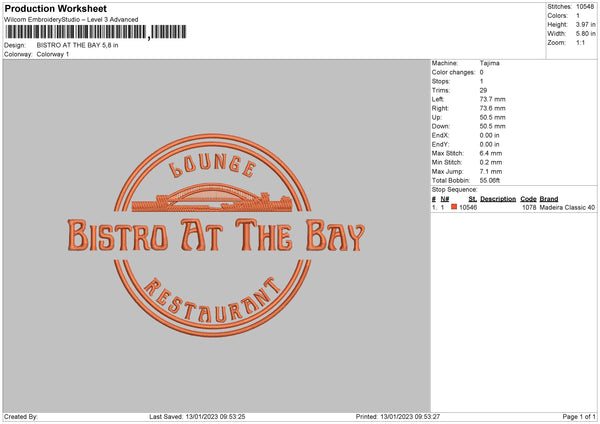 Bistro Embroidery File 6 sizes