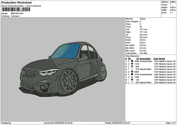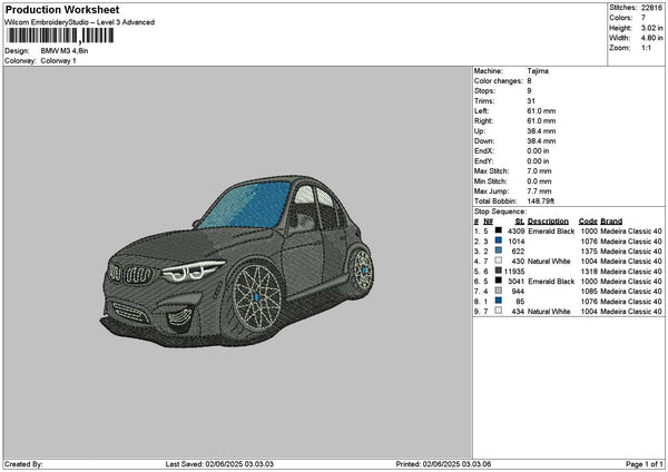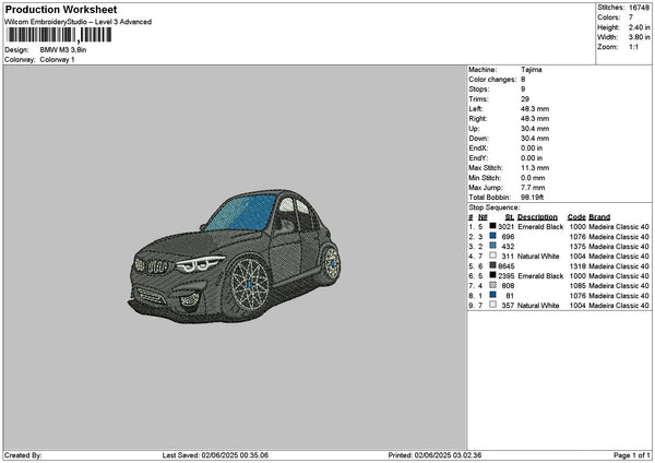 Black Car M3 Embroidery File 6 sizes