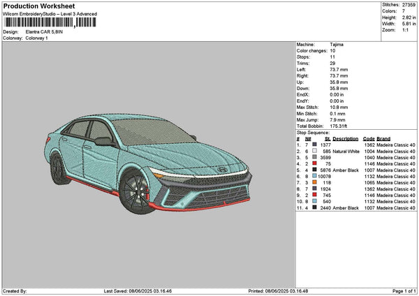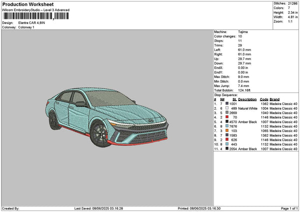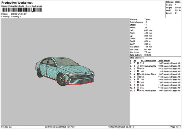 Blue Car 0806 Embroidery File 6 sizes