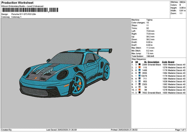 Blue Car 1901 Embroidery File 6 sizes