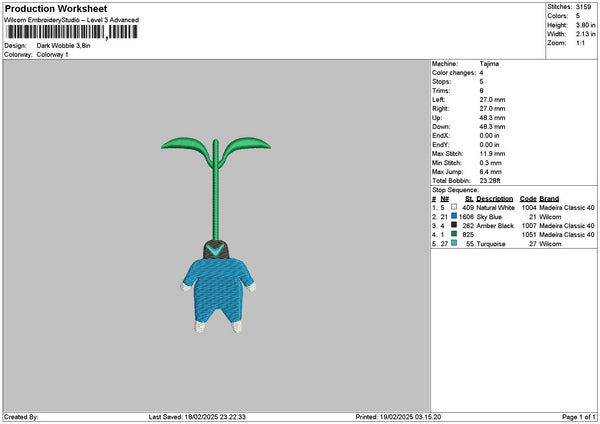 Blue Chibi Embroidery File 6 sizes