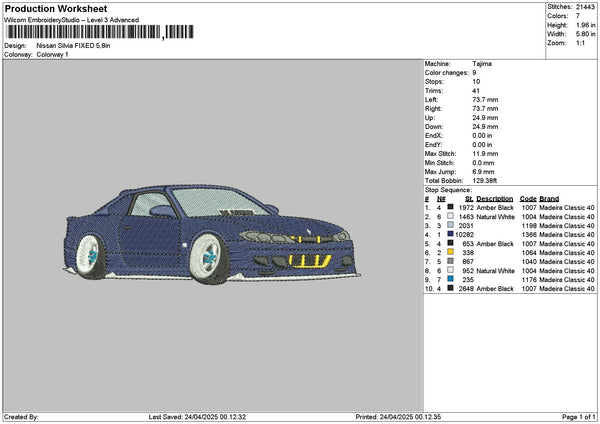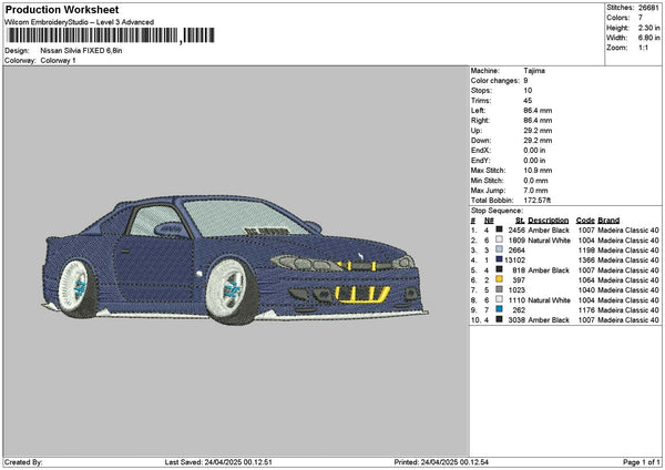 Blue Navy Car 2304 Embroidery File 6 sizes