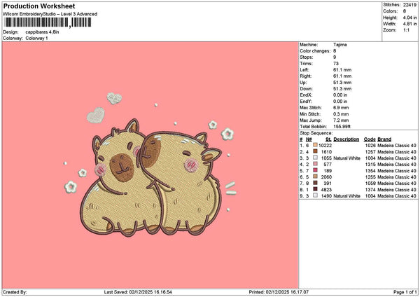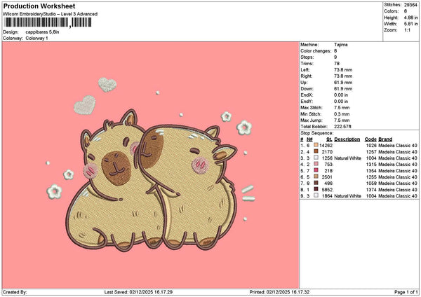 Cappybara0212 Embroidery File 6 sizes
