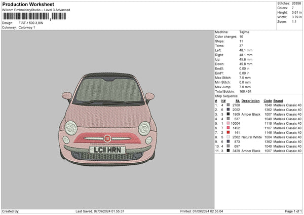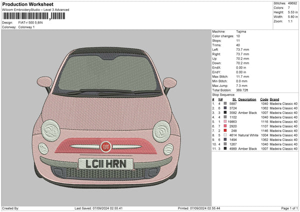 Car 0709b Embroidery File 6 sizes