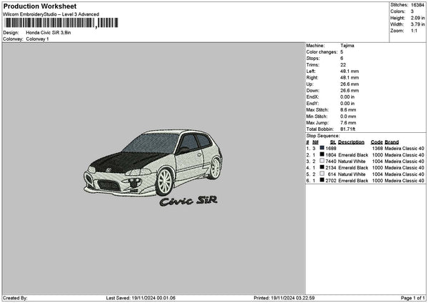 Car 1911 Embroidery File 6 sizes