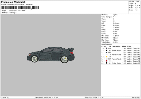 Car 2015 Embroidery File 6 sizes