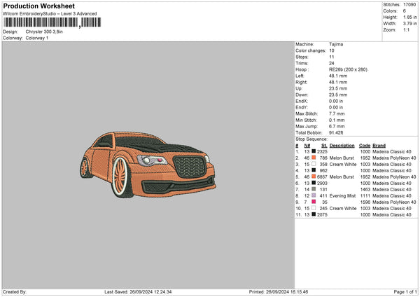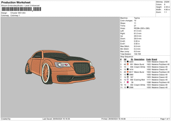 Car 2609a Embroidery File 6 sizes