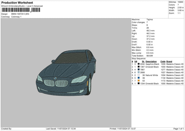 Car Bmw1107 Embroidery File 6 sizes