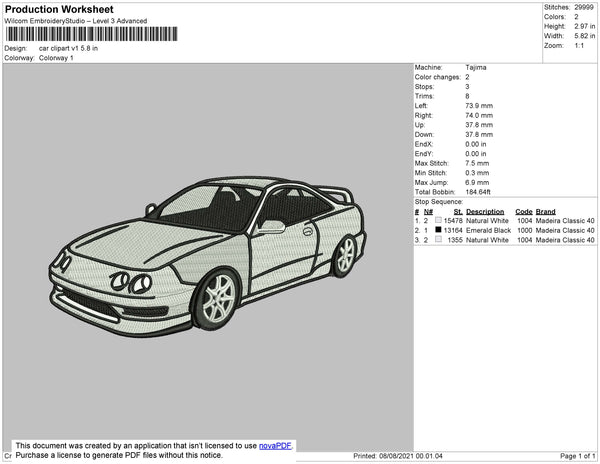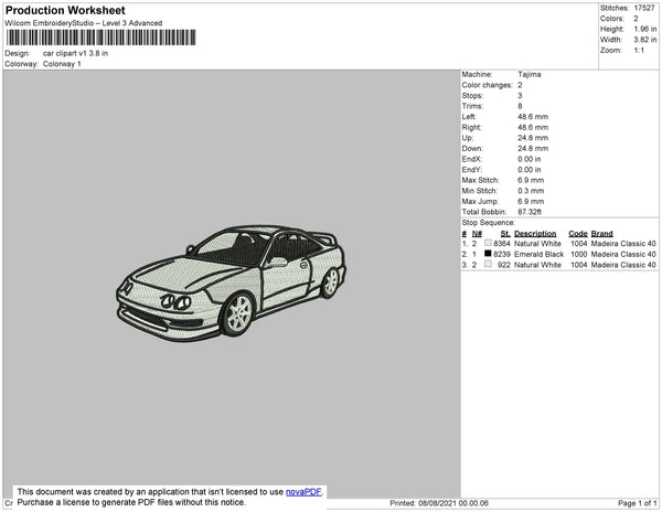 Car Clipart V1 Embroidery File 4 size