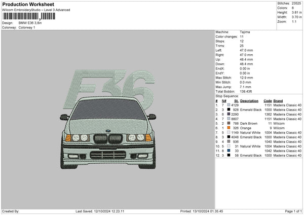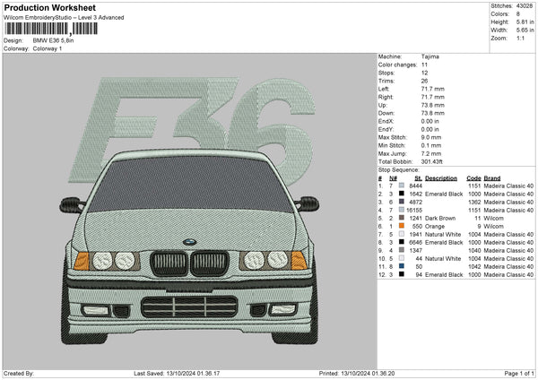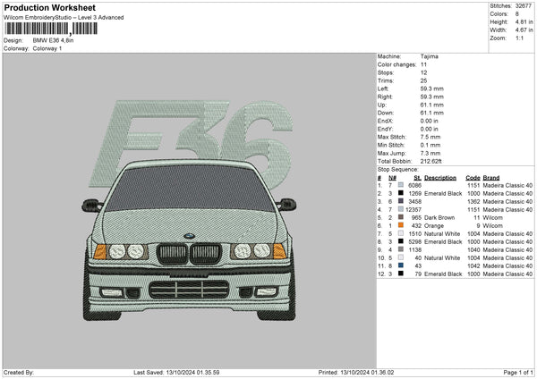 Car E36 Embroidery File 6 sizes