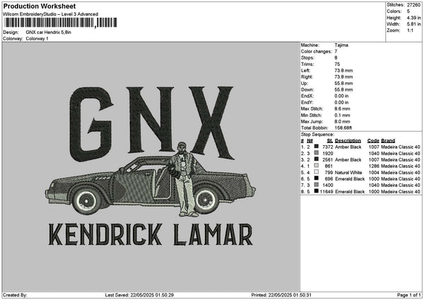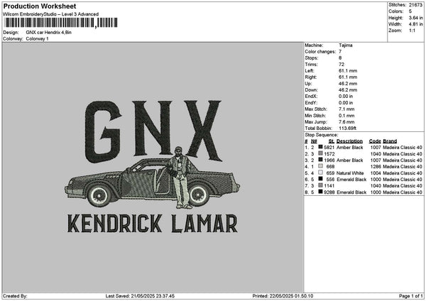 Car Gnx V2 Embroidery File 6 sizes