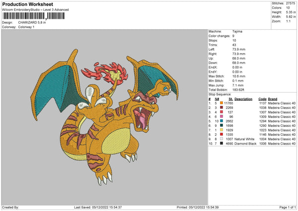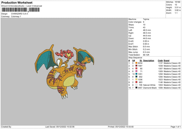 Charizard Embroidery File 6 sizes