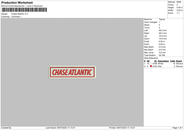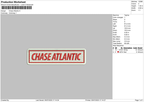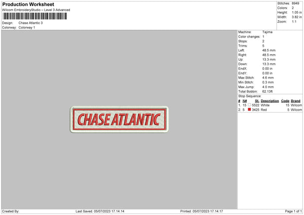 Chase Atlantic Embroidery File 6 sizes