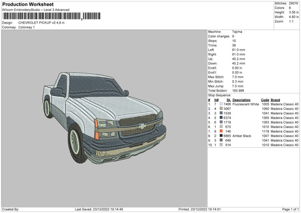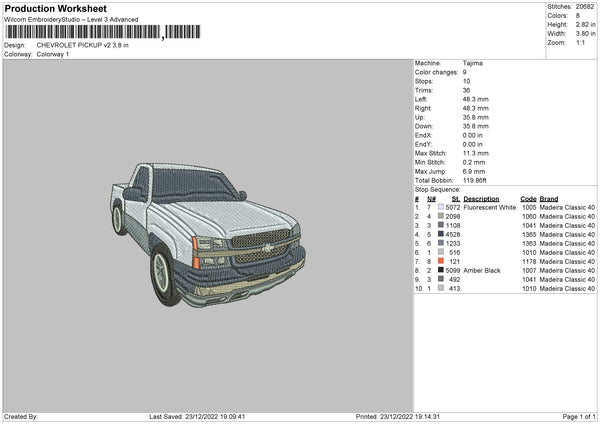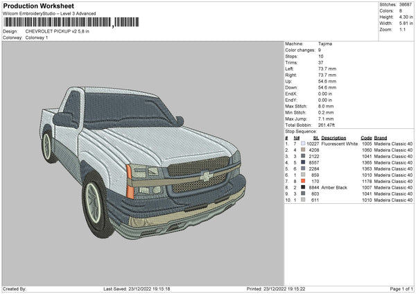 Chevrolet Pickup V2 Embroidery File 6 sizes