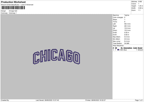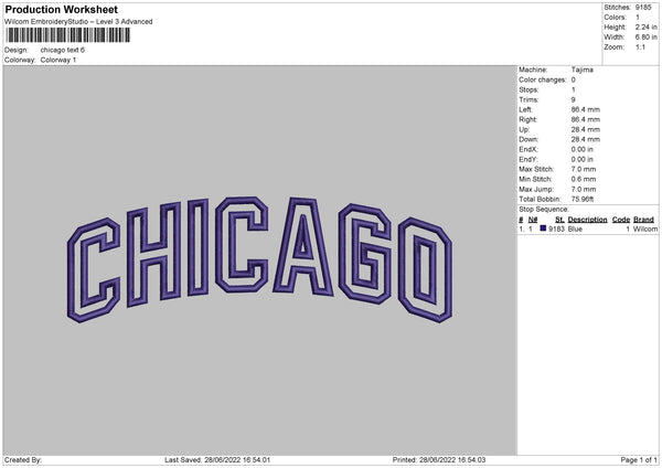 Chicago Text Embroidery File 4 sizes