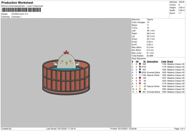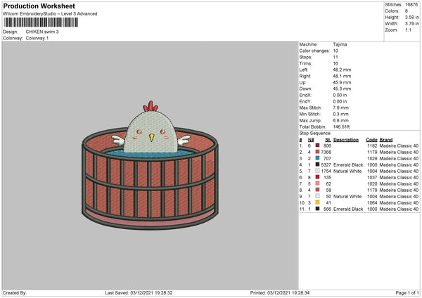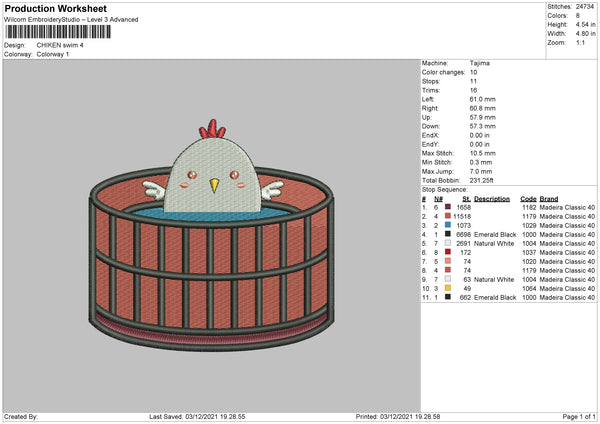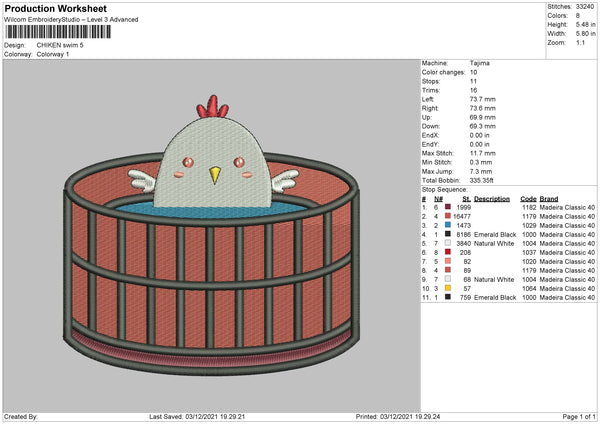 Chicken Swim Embroidery File 4 size
