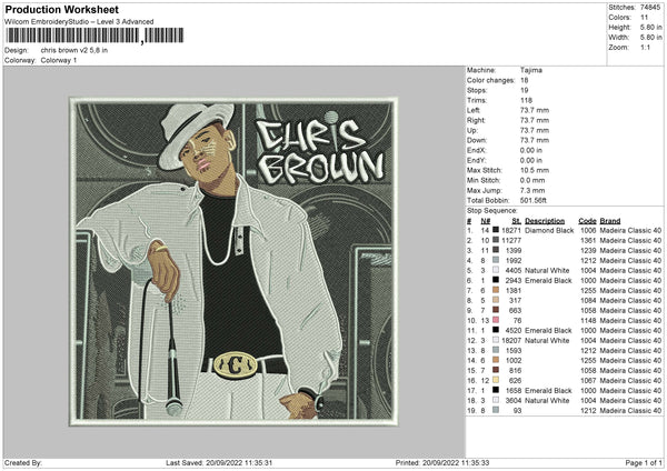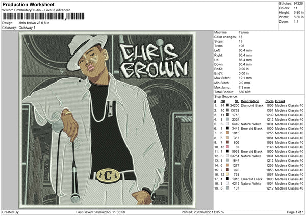 Chris Brown Embroidery File 5 sizes