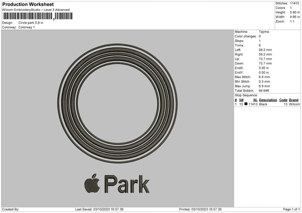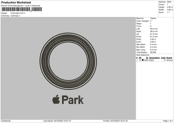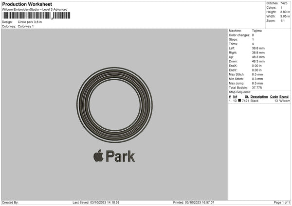 Circle Park Embroidery File 6 sizes
