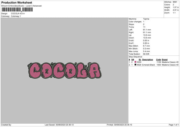 Cocola Embroidery File 6 sizes