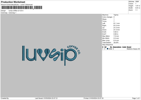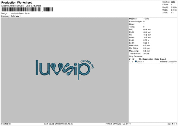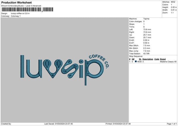 Coffeetext 0103 Embroidery File 6 sizes