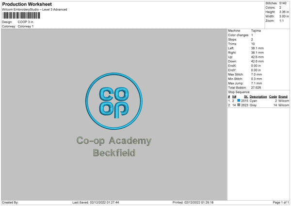 Coop Embroidery File 6 sizes