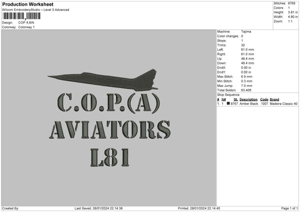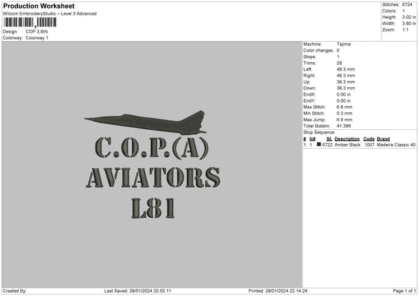Cop Embroidery File 6 sizes