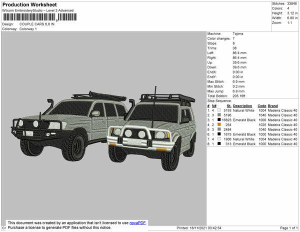 Couple Cars Embroidery File 4 size