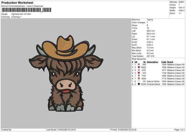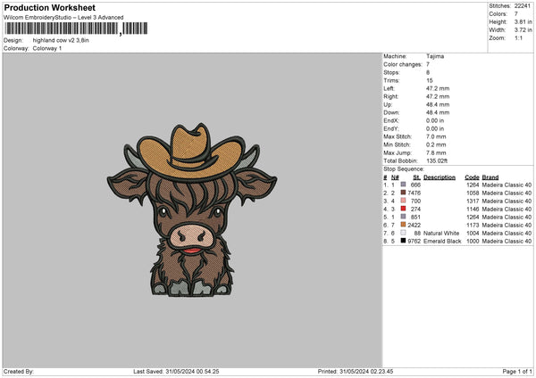 Cow Hat V3 Embroidery File 6 sizes