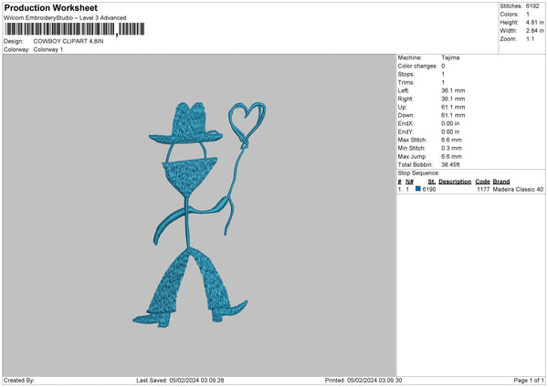 Cowboy0402 Embroidery File 6 sizes