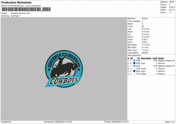 cowboys kirchner Embroidery File 6 sizes