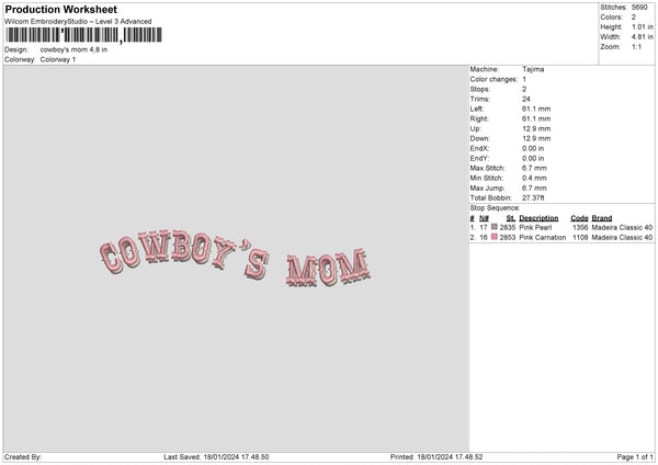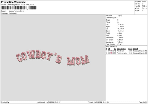 CowboysMom Embroidery File 6 sizes