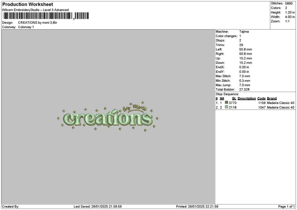 Crearionstext 2601 Embroidery File 6 sizes