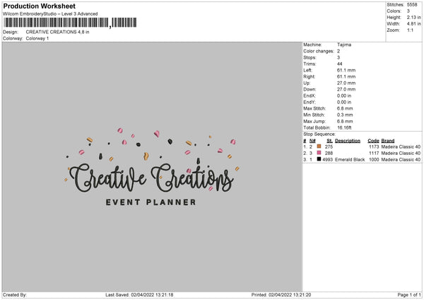 Creative Creations Embroidery File 4 size