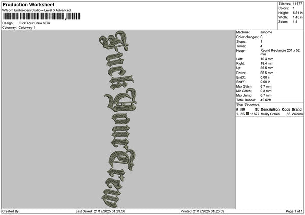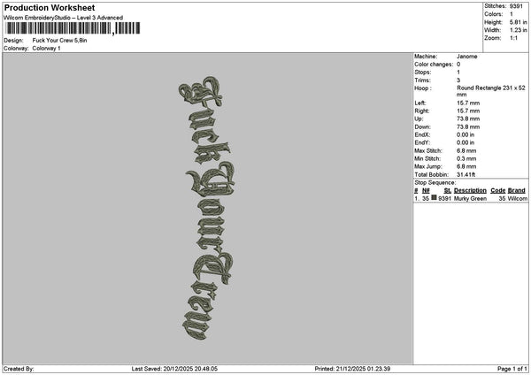 Crewtext Embroidery File 6 sizes