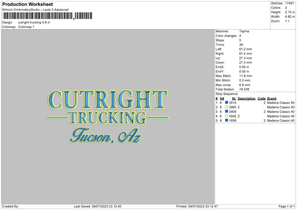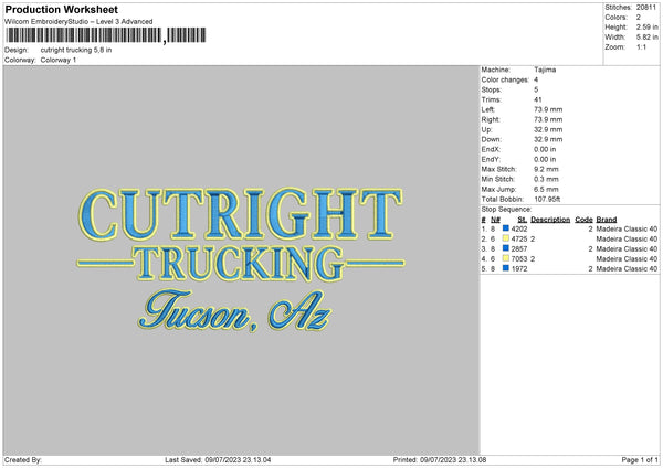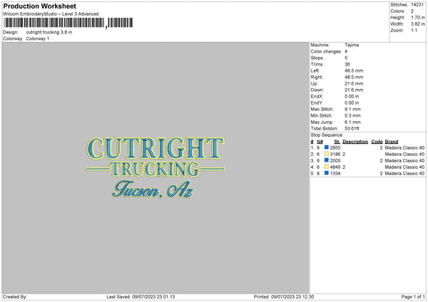 Cutright T Embroidery File 6 sizes