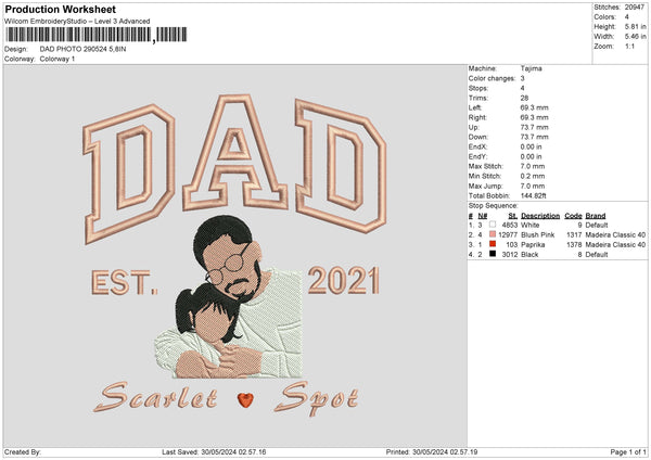 Dad Photo 2905 Embroidery File 6 sizes