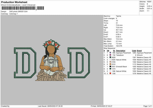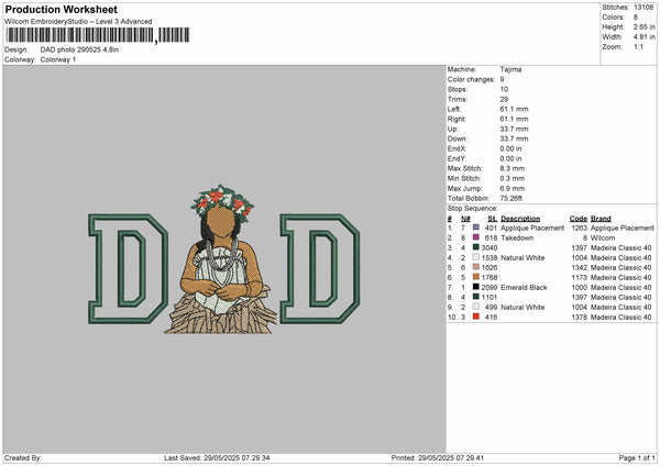 DAD Photo for Embroidery machine