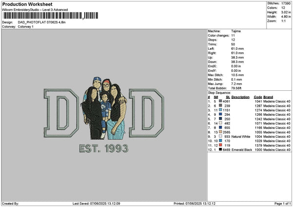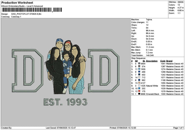 Dad Photoflat 0706 Embroidery File 6 sizes