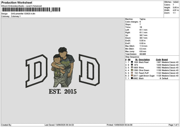 Dad Photoflat 1206 Embroidery File 6 sizes