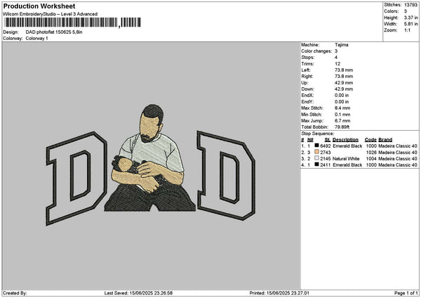 Dad Photoflat 1506 Embroidery File 6 sizes