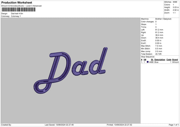 Dad Text 1324 Embroidery File 6 sizes