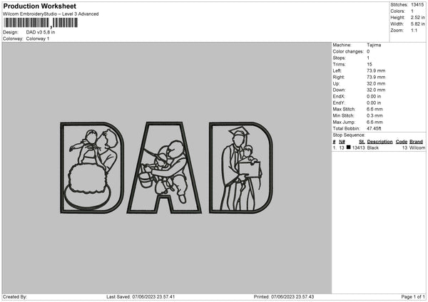 Dad V3 Embroidery File 6 sizes