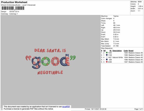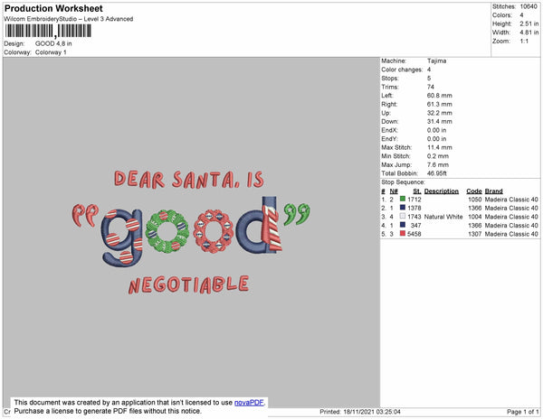Dear Santa Embroidery File 4 size
