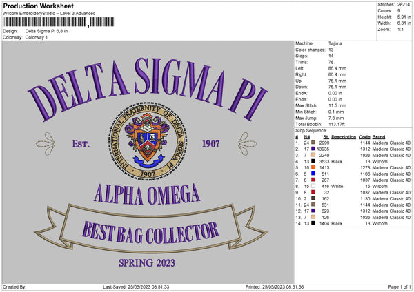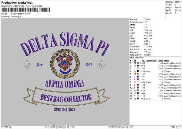 Delta Sigma Pi Embroidery File 6 sizes