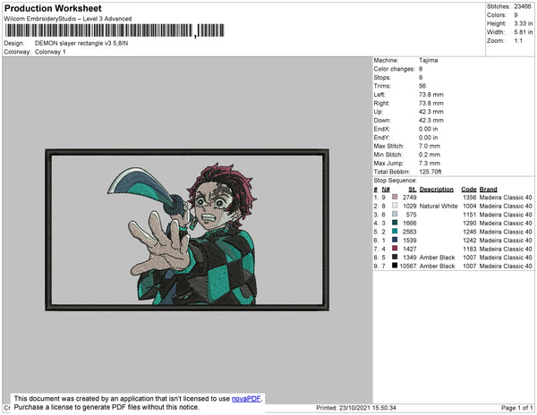 Demon Slayer Rectangle V3 Embroidery File 4 size