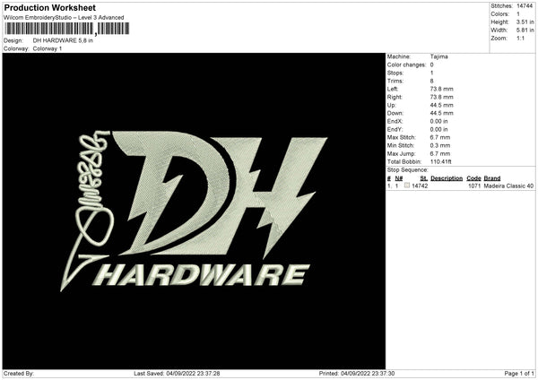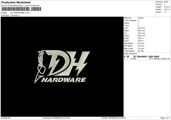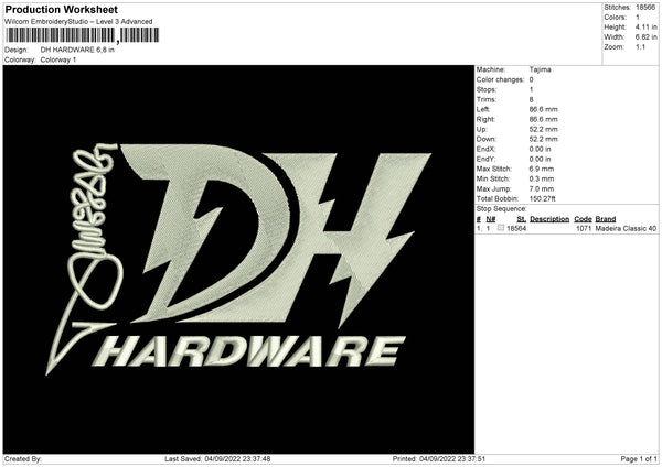 DH Hardware Embroidery File 5 sizes